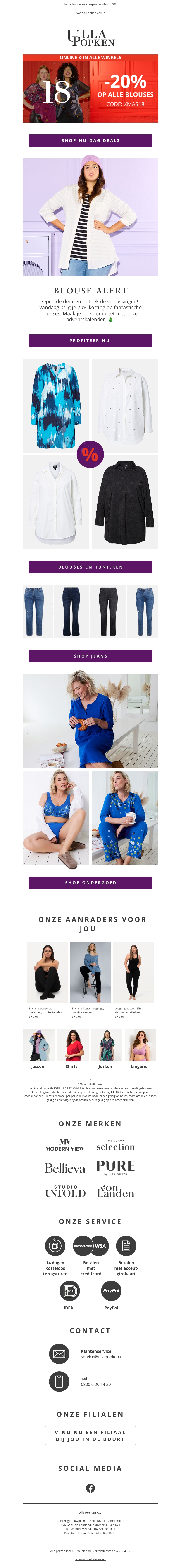 Profiteer nu van 20% korting op onze stijlvolle blouses. Perfect voor elke gelegenheid en verkrijgbaar in diverse stijlen en kleuren. Bekijk ook onze aanbevolen jeans en ander moois. Shop vandaag nog jouw favorieten!