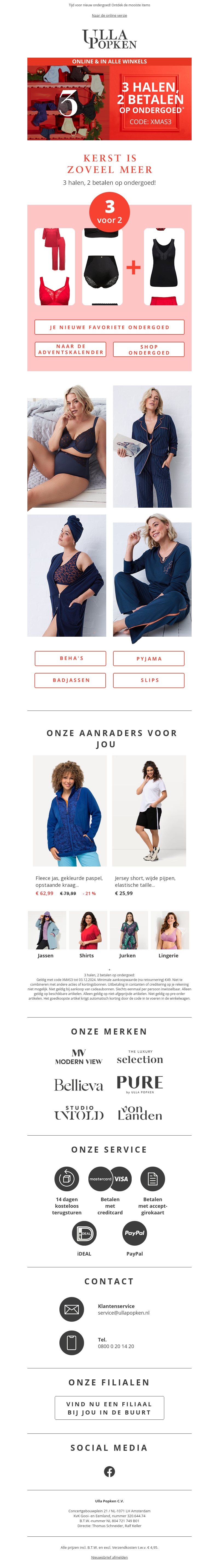 Ontdek onze geweldige aanbieding: koop drie ondergoedstukken en betaal er slechts twee! Perfect voor de feestdagen. Mis deze kans niet op kwalitatief ondergoed van topmerken. Bezoek onze winkels of shop online. Geniet van comfort en stijl voor minder.