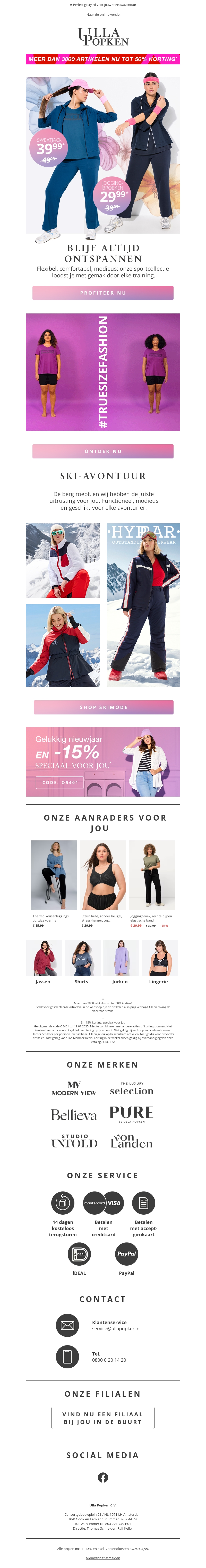 Beleef de ultieme shopervaring met meer dan 3800 artikelen die nu tot 50% zijn afgeprijsd. Ontspan met comfortabele sportkleding of ga een ski-avontuur aan met onze stijlvolle wintercollectie. Mis deze unieke kans niet om jouw garderobe te vernieuwen met hoge kortingen. Profiteer ook van een speciale nieuwjaarsaanbieding van 15% extra korting. Shop nu en ontdek mode en kwaliteit in één!
