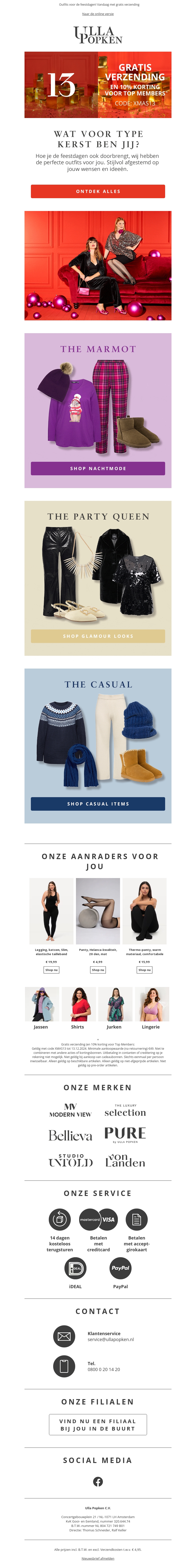 Ontdek vandaag de kerstselectie bij Ulla Popken met gratis verzending. Van nachtmode tot feestelijke glamour, er is iets voor elke stijl. Bekijk onze aanbevelingen en vind je perfecte outfit voor de feestdagen. Vergeet niet, deze aanbieding is alleen vandaag geldig. Shop nu en maak je klaar voor kerst!