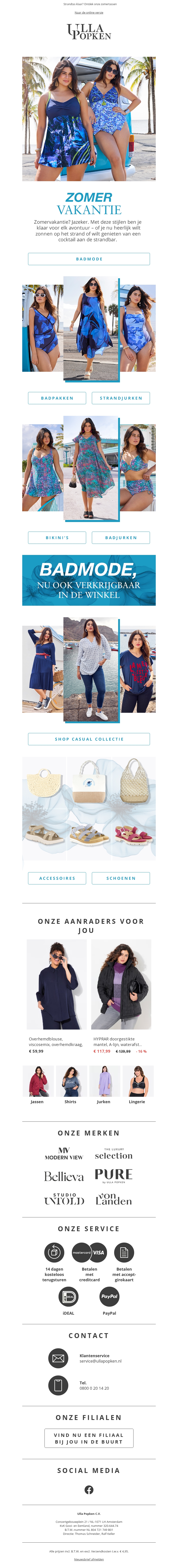 Bereid je voor op een stijlvolle zomer met onze modieuze badmodecollectie. Van flatteuze badpakken tot luchtige strandjurken, ontdek ontwerpen die passen bij elk figuur. Shop nu en voeg een vleugje stijl toe aan je stranddag!