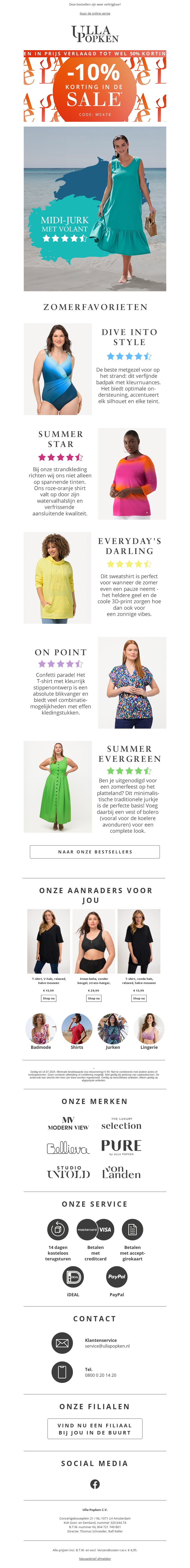 Mis het niet! Onze prijzen zijn verlaagd met kortingen tot 50% op een breed assortiment aan stijlen. Daarnaast krijg je nu nog eens 10% extra korting op alle sale items met de code WS478. Bekijk onze zomerfavorieten en meer.