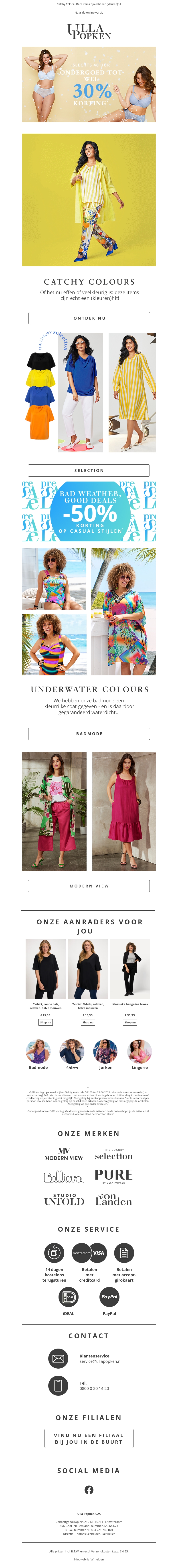 Ontdek nu de geweldige aanbiedingen van Lilla Popken met tot wel 30% korting op feel-good bh's. Geniet van kleurrijke mode met onze 'Catchy Colours' en 'Underwater Colours'. Pak ook 50% korting op casual stijlen. Shop nu en bespaar groot!