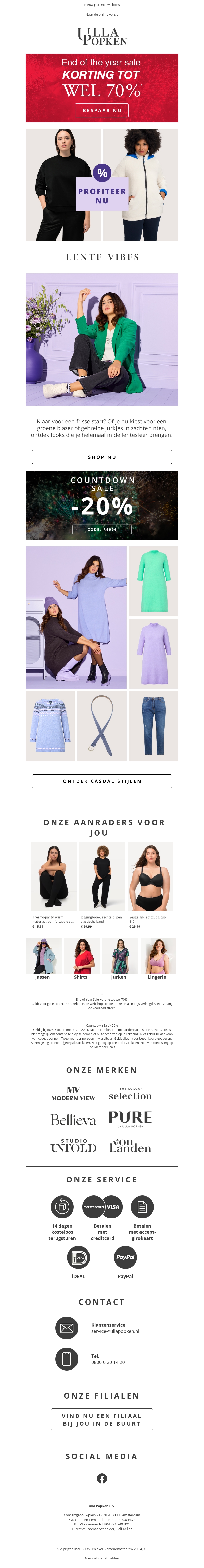 Profiteer van onze geweldige eindejaarsdeals met kortingen tot wel 70%! Vind jouw favoriete items en vernieuw je garderobe voor het nieuwe jaar. Van casual tot trendy, er is voor ieder wat wils.