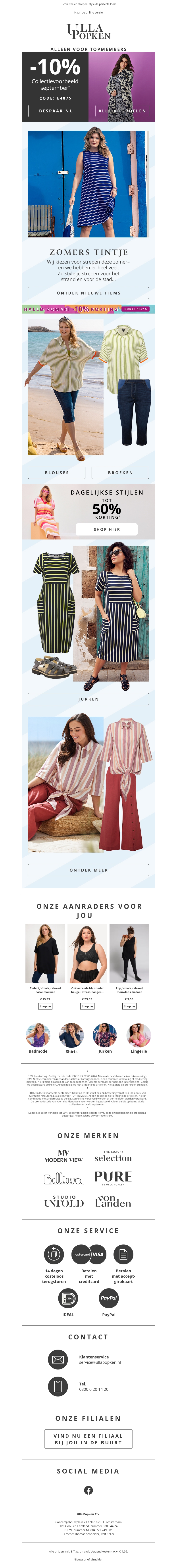 Ontvang exclusief 10% korting op de preview van onze septembercollectie. Verken zomerse tinten en dagelijkse stijlen met kortingen tot 50%. Alleen voor Top Members met de code: 14976. Haal nu je favoriete items binnen en geniet van een nieuwe garderobe.