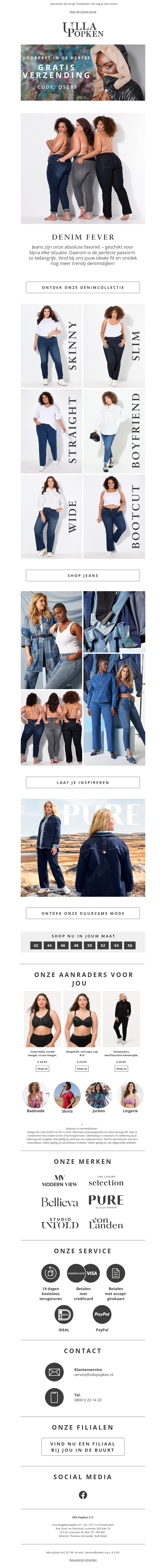 Ontvang gratis verzending bij elke bestelling in oktober. Verken de nieuwste denimtrends zoals skinny, straight, wide, en meer. Bekijk ook onze duurzame modecollectie voor stijlvolle en verantwoorde keuzes. Shop je favoriete merken en profiteer van extra gemak met onze betaalopties en snelle levering.