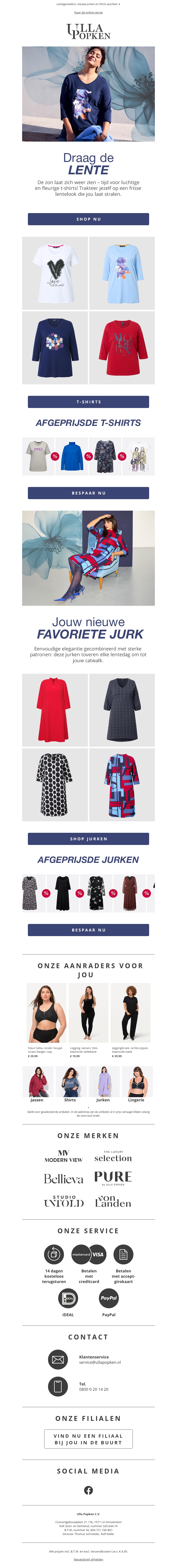 Ontdek de nieuwste aanbiedingscollecties van jurken en T-shirts, perfect voor de lente. Kies uit een divers aanbod en geniet van aantrekkelijke kortingen. Shop nu en vernieuw je garderobe met stijl.
