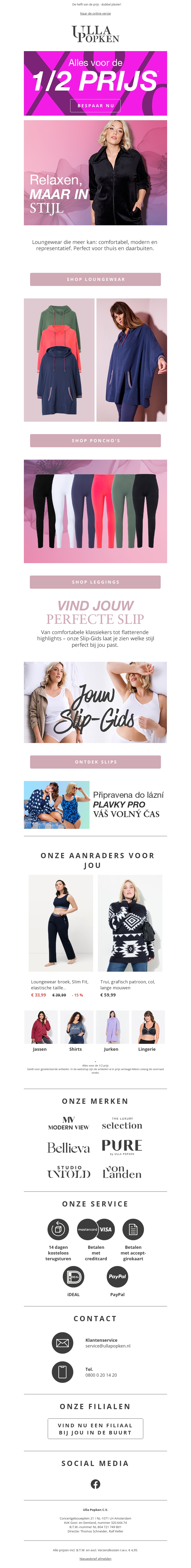 Verwen jezelf met de nieuwste loungewear collectie bij Lila Popken en geniet van comfort en stijl. Ontdek onze veelzijdige poncho's en leggings die perfect zijn voor elk moment van de dag. Vind de perfecte slip die bij jou past en shop onze aanbevelingen. Mis deze geweldige deals niet!