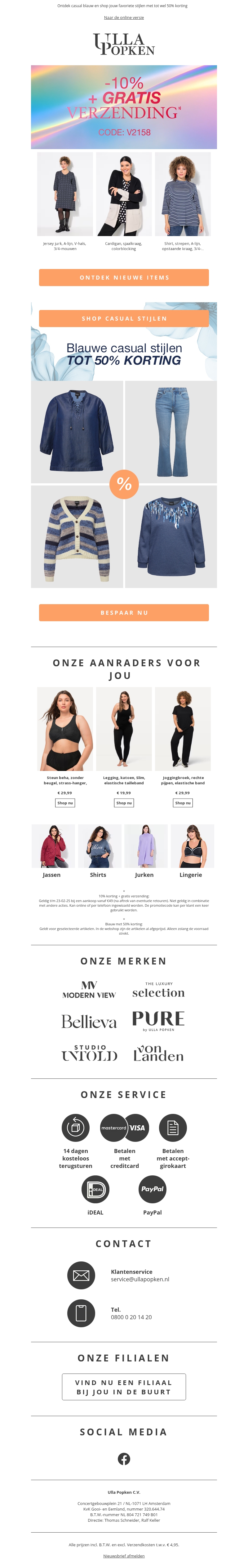 Mis deze geweldige kans niet bij Ulla Popken! Ontvang 10% korting plus gratis verzending op prachtige kledingstukken. Bekijk trendy jurken, comfortabele casual stijlen, en onze bestsellers. Verfris je garderobe met onze stijlvolle aanbevelingen. Bestel nu eenvoudig online!
