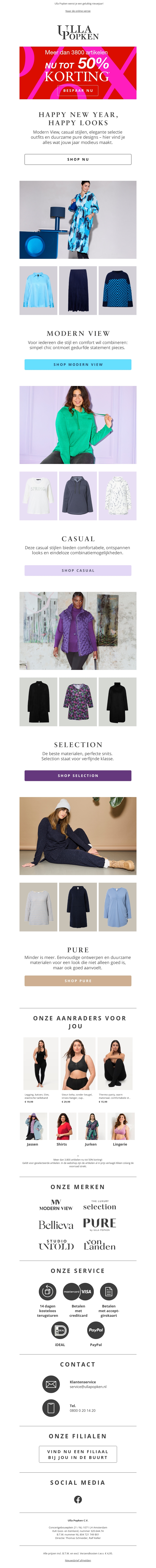 Ulla Popken biedt nu tot 50% korting op meer dan 3.800 items. Verfris uw garderobe met onze nieuwste collecties. Ontdek het gemak van online winkelen en geniet van snelle levering. Onze selectie biedt voor elk wat wils. Shop nu en bespaar met geweldige kortingen.