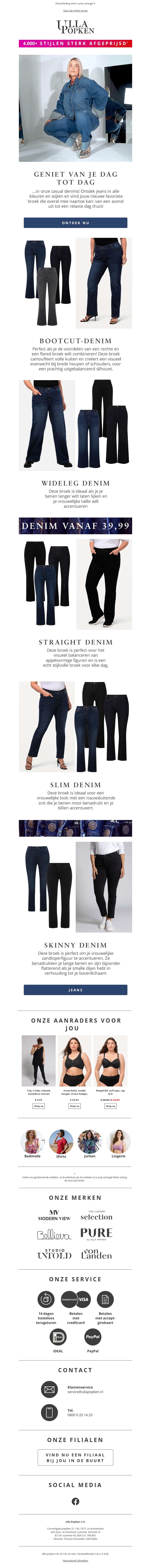Geniet iedere dag van comfort met onze uitgebreide collectie jeans. Of je nu op zoek bent naar wideleg, bootcut, straight of skinny denim, wij hebben de perfecte pasvorm voor jou. Mis onze speciale prijzen niet en ontdek je nieuwe favoriete jeans!