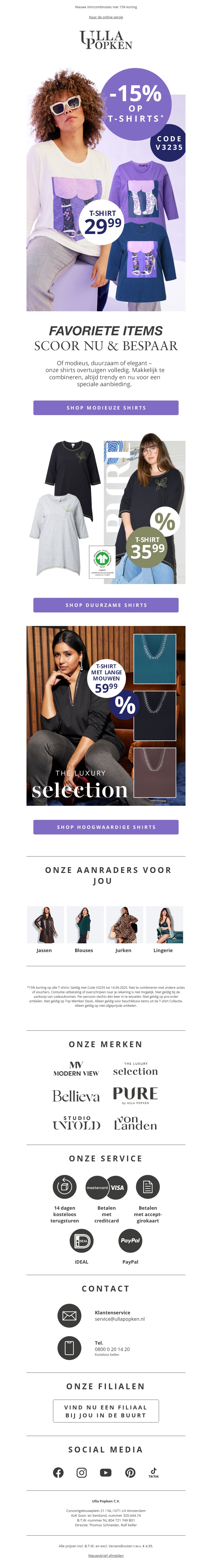 Nieuwe shirtcombinaties met 15% korting