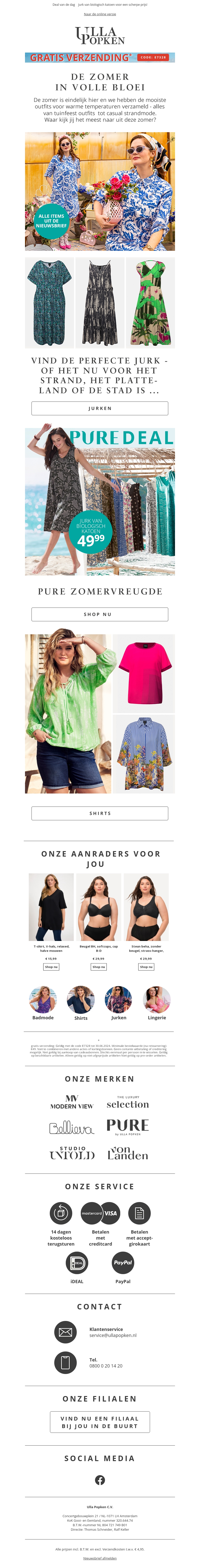 De zomer is eindelijk hier en bij Ulla Popken hebben we de mooiste outfits voor warme temperaturen. Ontvang nu gratis verzending met de code E7238. Bekijk de nieuwste collectie boordevol zomerse jurken en shirts. Mis deze kans niet en shop nu!