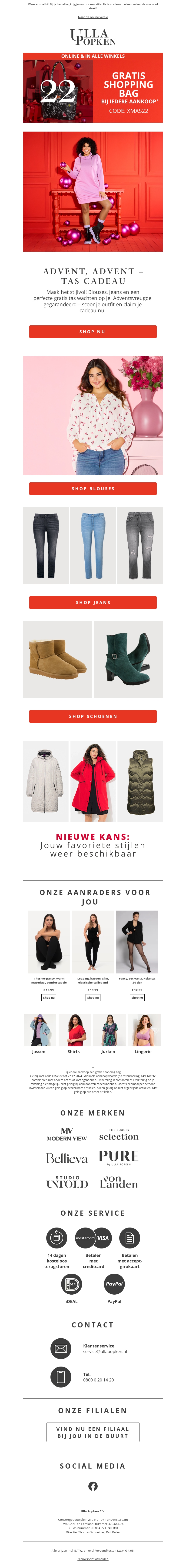 Mis deze kans niet om een gratis tas te ontvangen bij je aankoop! Lilla P opken biedt de nieuwste modeaanbiedingen aan. Ontdek de stijlvolle collecties en profiteer van exclusieve voordelen. Shop blouses, jeans, schoenen en jassen nu. Vergeet niet de code MH4522 te gebruiken bij het afrekenen.