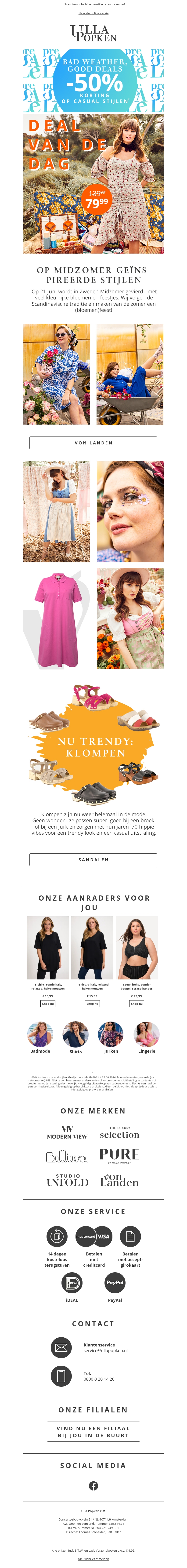 Profiteer van geweldige kortingen tot 50% op casual stijlen in onze midsomer sale! Ontdek de nieuwste trendy stukken, inclusief onze must-have klompen. Shop nu en bereid je voor op een zomer vol mode.