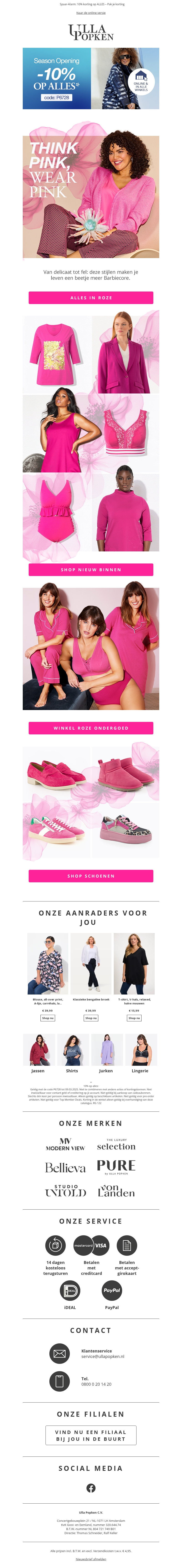 Verken de nieuwste trend: roze mode die echt opvalt! Onze collectie biedt een uitgebreide selectie van stijlvolle kleding en accessoires in roze tinten, perfect om je garderobe op te frissen. Van opvallende tops tot elegante jurken en comfortabele schoenen. Ontdek onze nieuwste aanwinsten en maak een mode statement. Profiteer van 10% korting met code FUN23.