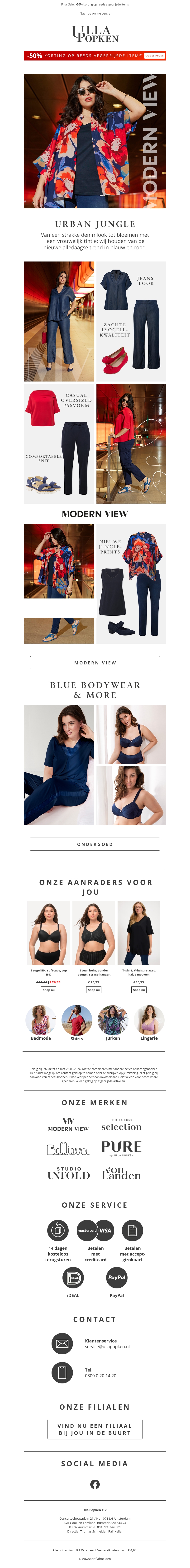 Blauw en rood zijn de trendkleuren van het seizoen! Van casual tot chique, ontdek de nieuwste modebij ons. Profiteer nu van 50% korting op geselecteerde items.