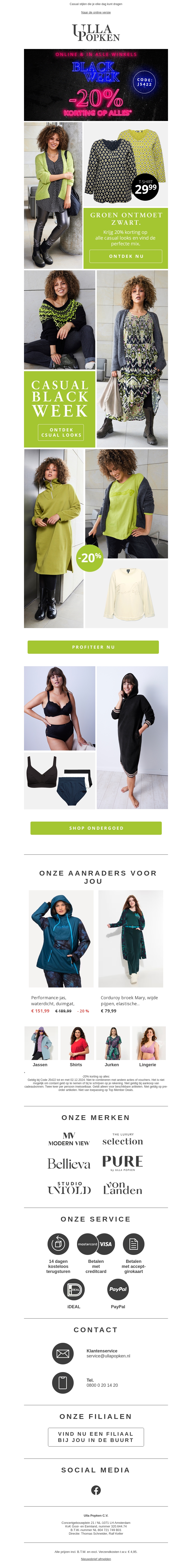 Verwen uzelf met 20% korting op alles tijdens onze geweldige Black Week Sale. Ontdek een breed scala aan mode van topmerken, met stijlen die passen bij elke gelegenheid. Haast je en profiteer van deze tijdelijke korting. Bezoek onze website om uw favoriete stukken te bemachtigen. Vergeet niet de kortingscode BLACK20 te gebruiken bij uw aankoop.