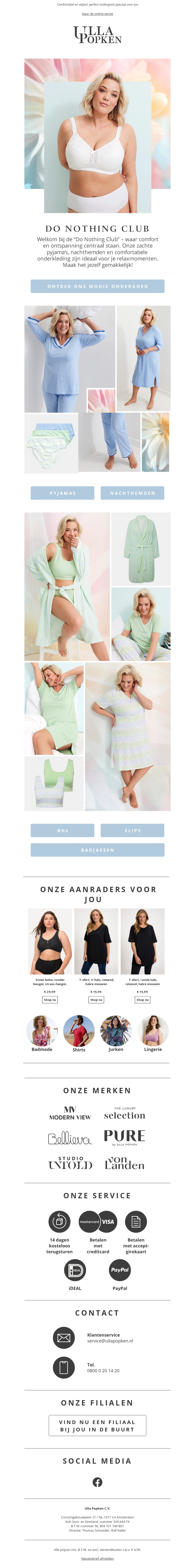 Welkom bij de 'Do Nothing Club' met Ulla Popken's nieuwste ondergoedcollectie. Geniet van comfortabele pyjama's, nachthemden en meer. Ideaal voor dagen van ontspanning. Shop nu en ontdek het gemak van onze nieuwste items. Ontdek vandaag nog jouw favorieten.