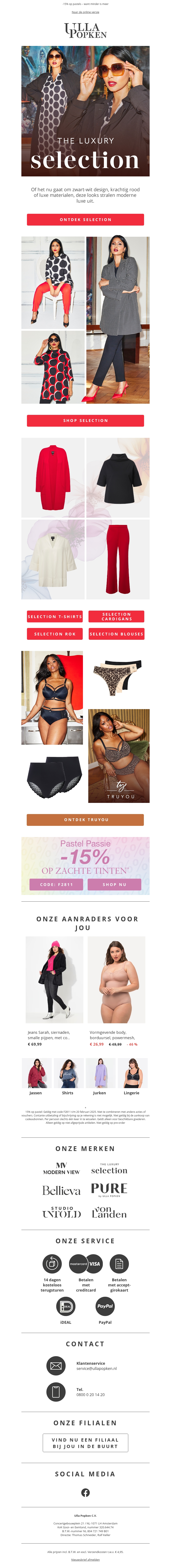 Verken de nieuwe en elegante kledingcollectie waar zwart-wit harmonieus rood ontmoet. Perfect voor een statement make-over met een wow-effect. Of je nu op zoek bent naar casual of chique, deze collectie biedt het allemaal.