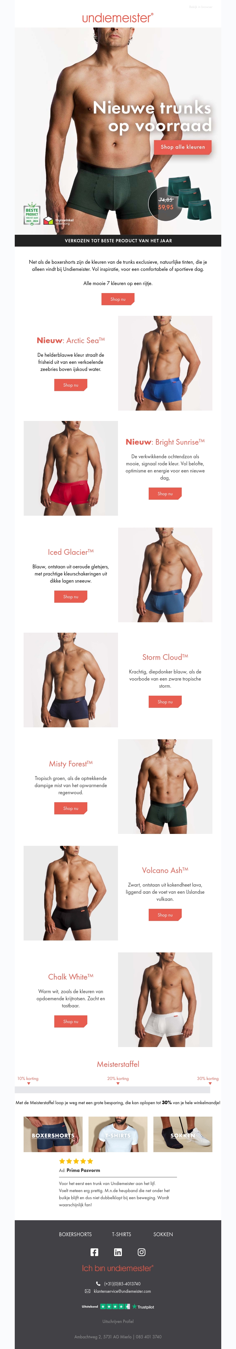 De nieuwste collectie trunks van Undiemeister is beschikbaar in diverse prachtige kleuren zoals Arctic Sea, Bright Sunrise en meer. Geniet van ultiem comfort en stijl. Ontdek nu de volledige collectie en shop jouw favoriete kleur!