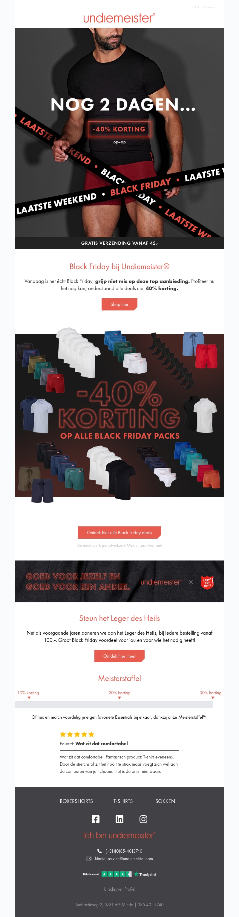 Grijp je kans met de Black Friday deals van Undiemeister, met maar liefst 40% korting op geselecteerde packs. Verzeker je van jouw exemplaar vóórdat de voorraad op is. Daarnaast steun je het Leger des Heils bij elke bestelling vanaf 100 euro.