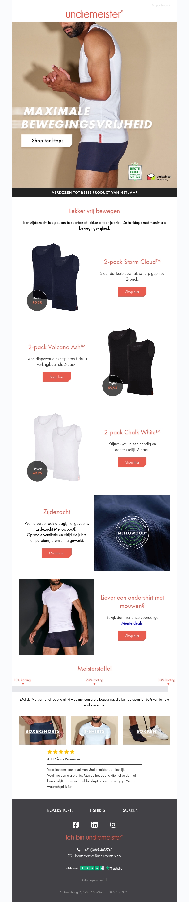 Ervaar maximale bewegingsvrijheid met onze mouwloze T-shirts. Kies uit verschillende kleuren, zoals Storm Cloud en Volcano Ash, en geniet van het zijdezachte gevoel van Mellowood®. Bekijk ook onze Meisterstaffel korting tot 30%.