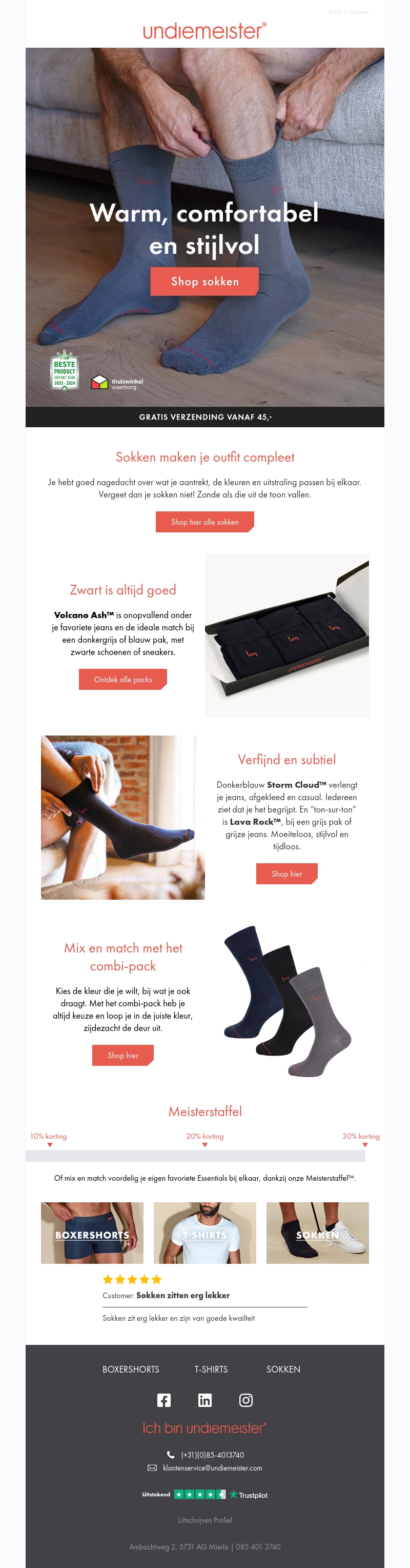 Deze nieuwsbrief presenteert een uitgebreide collectie sokken die je outfit moeiteloos compleet maken. Van de subtiele Volcano Ash™ tot de veelzijdige Lava Rock™, er is voor ieder wat wils. Profiteer van onze Meisterstaffel kortingen en mix en match je favoriete kleuren. Toevallig een jeansdag? Kies de perfecte sok om jouw look af te maken!