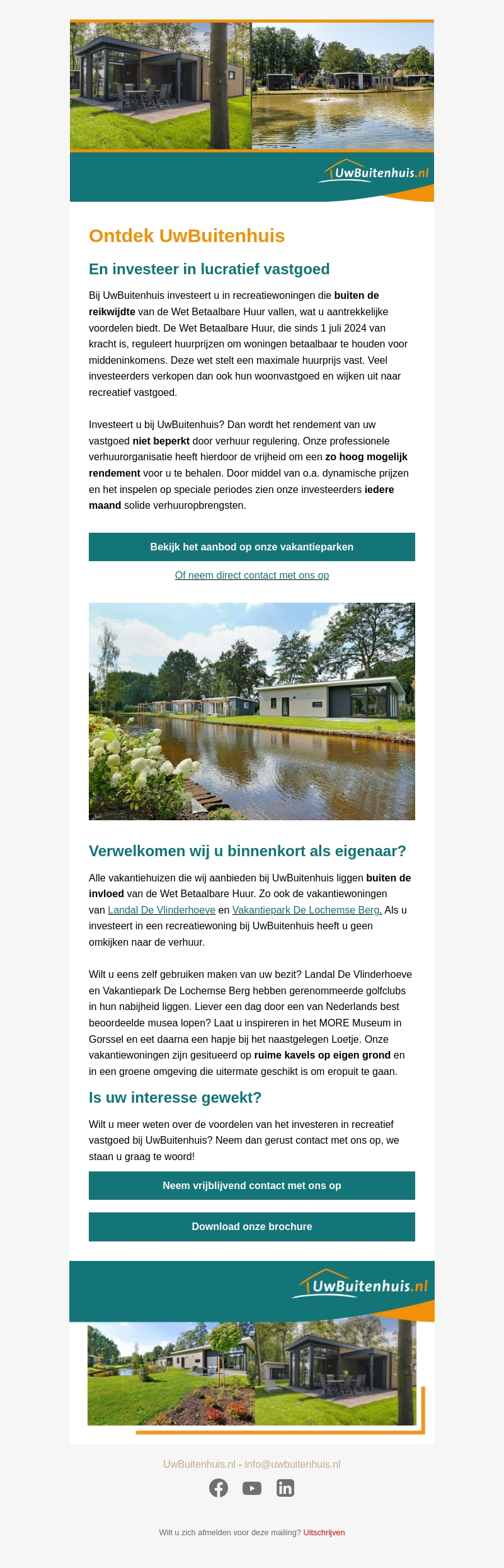 Bij UwBuitenhuis investeert u in recreatiewoningen die buiten de reikwijdte van de Wet Betaalbare Huur vallen, wat aantrekkelijke voordelen biedt. Deze wet, sinds 1 juli 2024 van kracht, reguleert huurprijzen om woningen betaalbaar te houden. Uw opbrengsten worden niet beperkt, waardoor een hoog rendement mogelijk is. Ontdek onze vakantieparken en neem direct contact op voor meer informatie.
