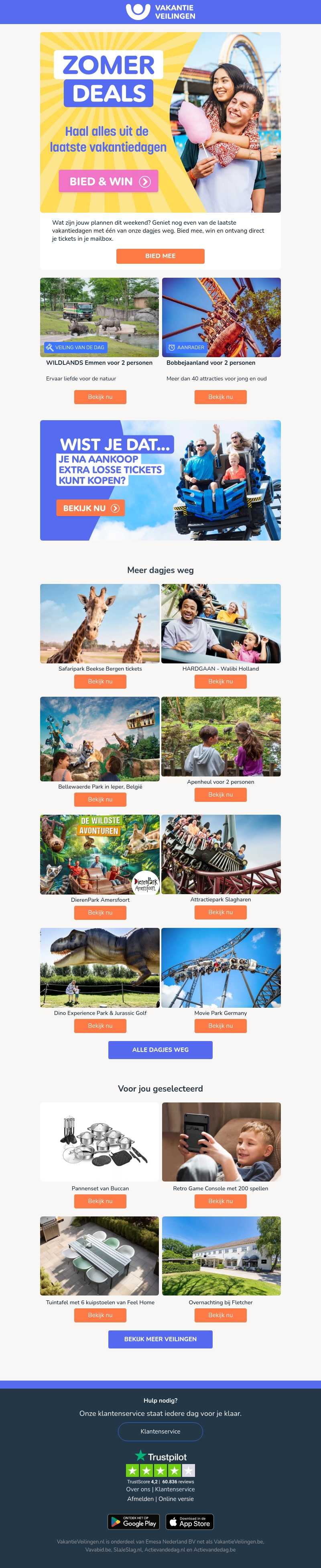 Wat zijn jouw weekendplannen? Geniet nog van de laatste vakantiedagen met een dagje weg naar WILDLANDS, Bobbejaanland of Walibi. Bied mee en ontvang direct je tickets in je mailbox. Ontdek ook onze andere spannende uitjes en aanbiedingen!