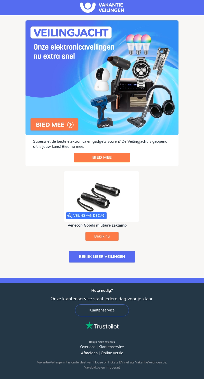 Mis deze kans niet om top elektronica en gadgets te scoren bij onze veilingjacht. Bied mee op geweldige producten zoals smart verlichting, horloges, en meer. Haal het maximale uit Elektronica Veilingen bij VakantieVeilingen. Bied nu mee en ontdek de deals!