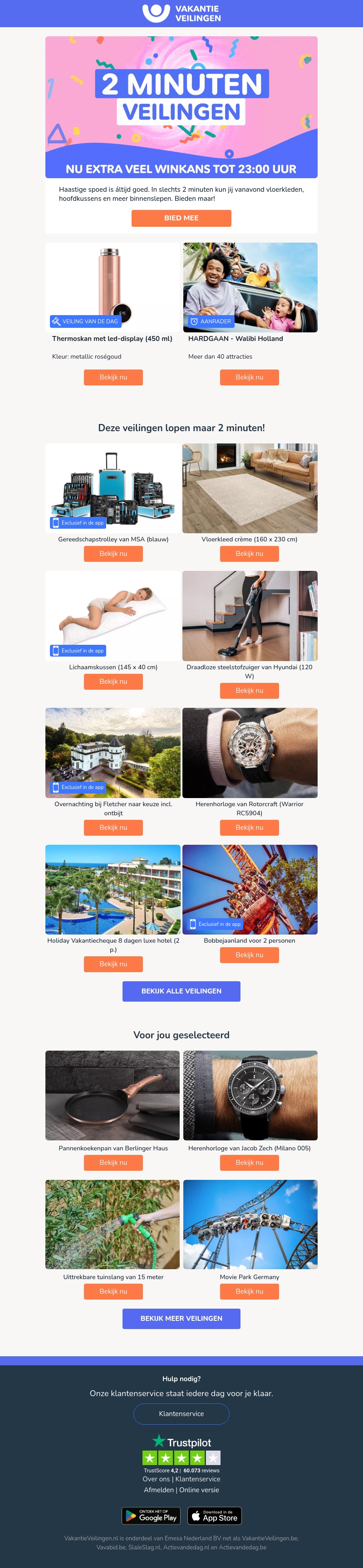 Haast je! Ontdek prachtige vloerkleden, stijlvolle kussens en meer interieurartikelen. Deze veilingen lopen slechts 2 minuten en bieden optimale winkansen tot 23:00 uur. Bekijk nu het exclusieve aanbod en sla je slag voordat de tijd om is.