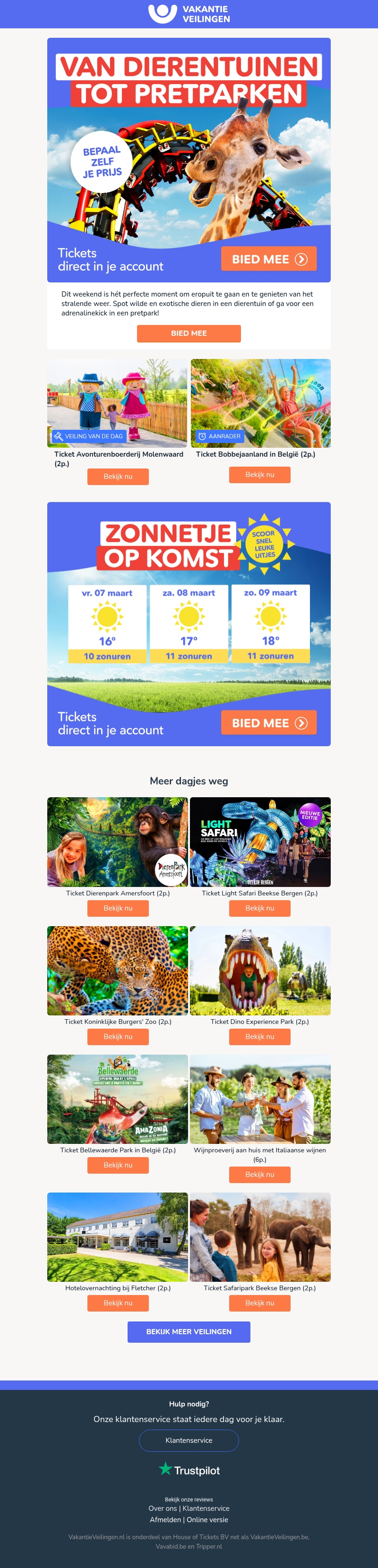 Dit weekend is perfect voor een uitstapje naar de dierentuin of een pretpark. Geniet van de zon en bezoek exotische dieren of spannende attracties. Bepaal zelf de prijs van je tickets en creëer herinneringen vol avontuur. Mis deze kans niet om toffe uitjes te scoren.
