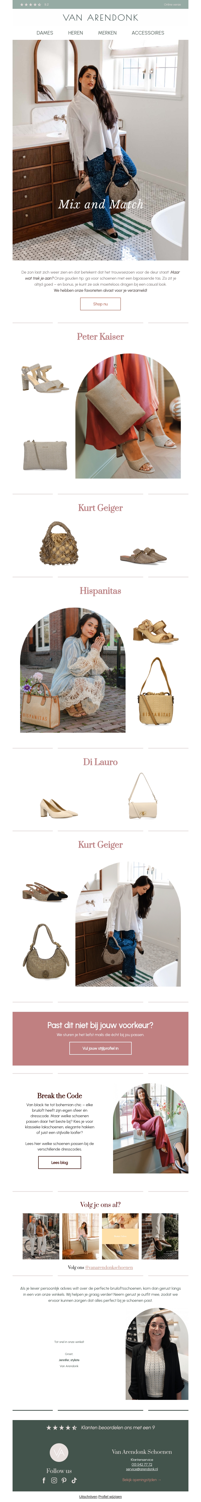 Bereid jezelf stijlvol voor op elke bruiloft met de nieuwste collectie schoenen en accessoires van Van Arendonk. Ontdek merken zoals Peter Kaiser en Kurt Geiger die elegante ontwerpen bieden voor speciale gelegenheden. Combineer je outfit met een verfijnde tas of sandalen. Laat je inspireren door onze mix en match tips voor een onvergetelijke dag.