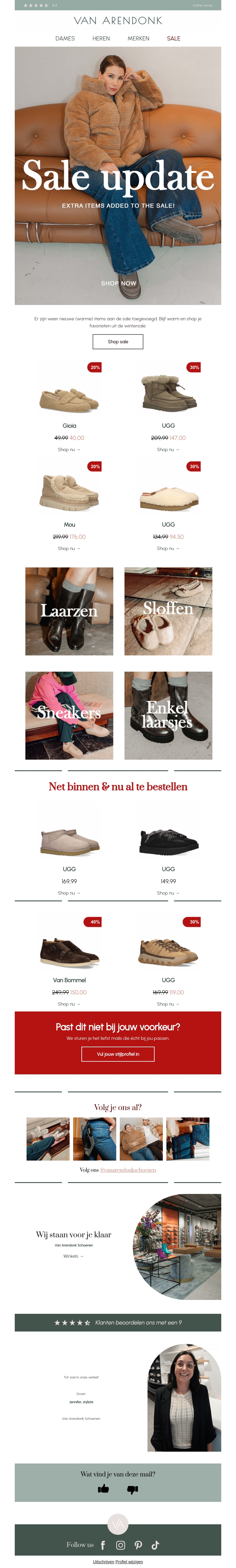 De sale gaat verder met nog meer warme winteritems. Ontdek de nieuwste collectie van bekende merken zoals UGG en Van Bommel tegen gereduceerde prijzen. Profiteer nu van kortingen tot wel 50% op schoenen, laarzen en sloffen. Mis jouw favoriete items niet en shop vandaag nog online. Geniet van een luxe winkelervaring met onze nieuwste aanvullingen.