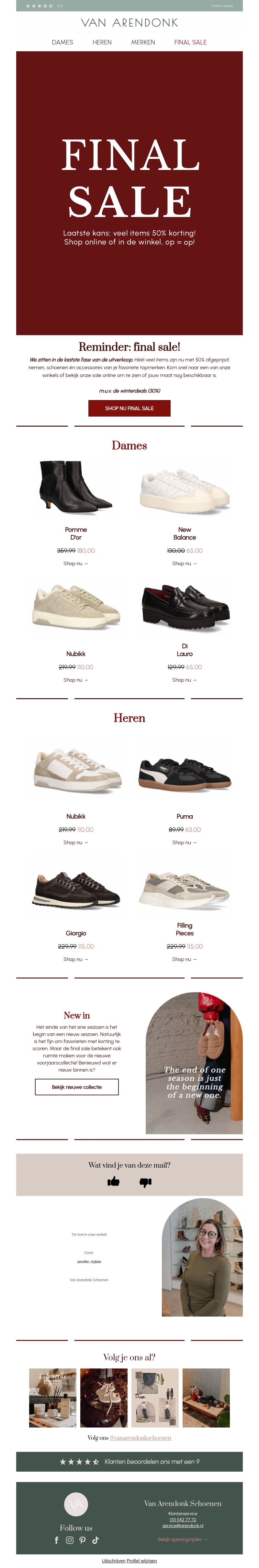 Ervaar de ultieme finale uitverkoop bij Van Arendonk. Geniet van kortingen tot wel 50% op een uitgebreid assortiment schoenen voor zowel dames als heren. Mis deze kans niet om stijlvolle schoenen te bemachtigen tegen sterk gereduceerde prijzen. Shop nu online of bezoek onze winkels. Op = op!