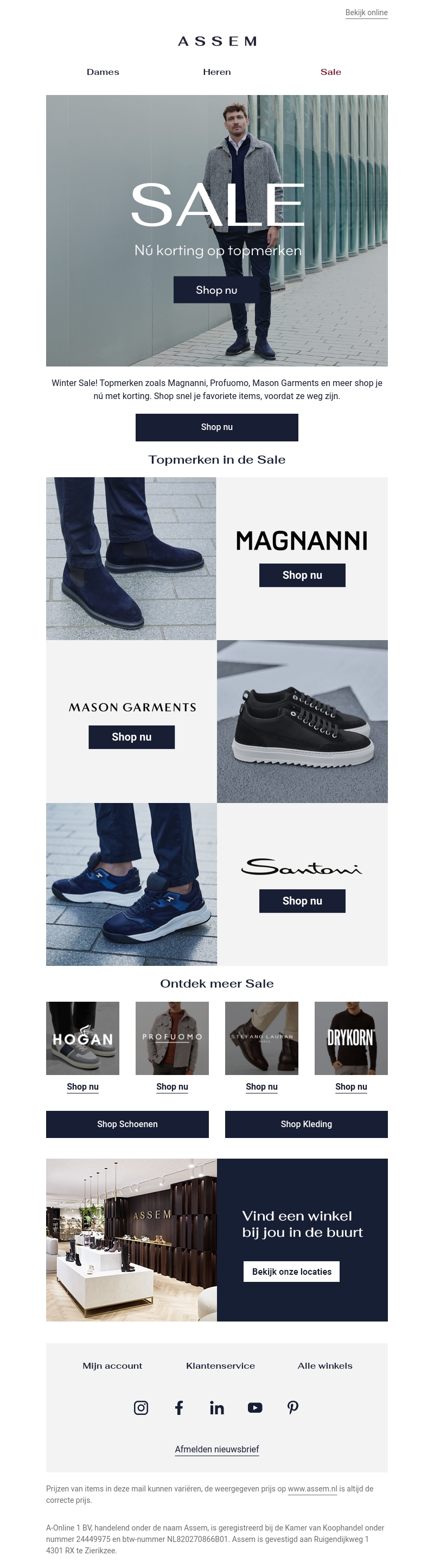 Profiteer nu van geweldige kortingen op topmerken bij Assem. Ontdek aanbiedingen op merken zoals Magnanni, Profuomo en meer. Mis deze kans niet om uw favoriete items in te slaan voordat ze weg zijn. Shop schoenen en kleding met uitzonderlijke kortingen. Bezoek een winkel bij jou in de buurt voor extra voordelen. Actieprijzen zijn geldig zolang de voorraad strekt.