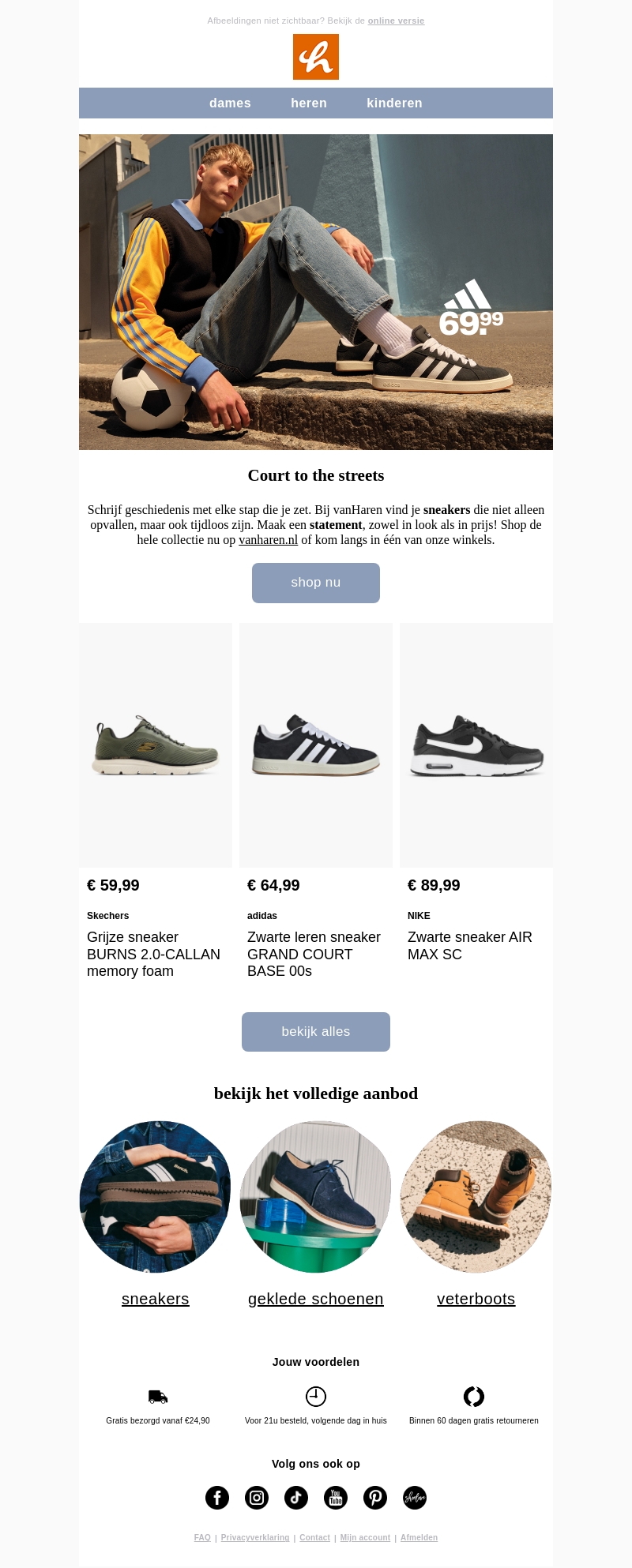 Verken de nieuwste sneakercollectie van vanHaren, met opvallende en tijdloze ontwerpen van topmerken zoals Nike, adidas en Skechers. Vind de perfecte match voor jouw stijl, of je nu gaat voor een casual look of een sportieve uitstraling. Ontdek het volledige aanbod op vanharen.nl of bezoek een van de winkels. Maak een statement en shop vandaag nog!