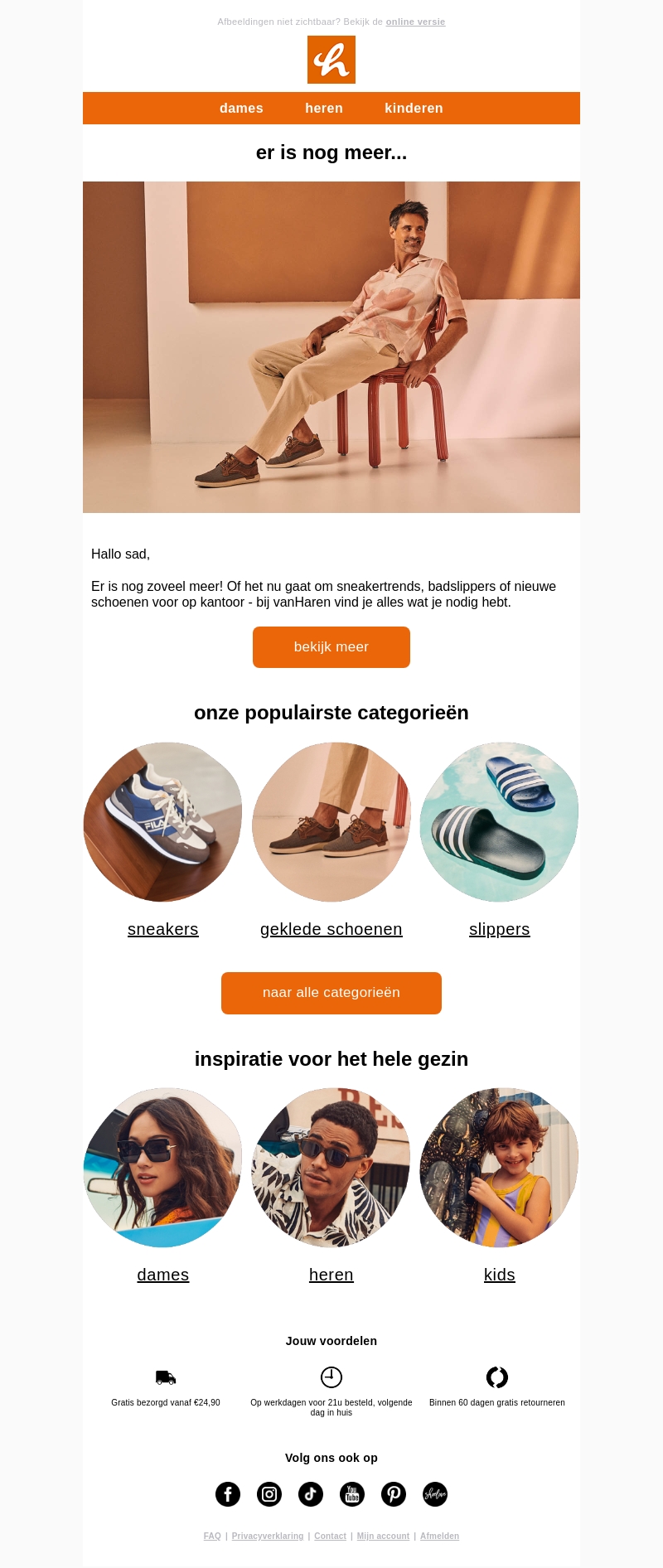 Er is nog zoveel meer bij vanHaren! Van trendy sneakers en comfortabele badslippers tot stijlvolle schoenen voor kantoor. Ontdek ons uitgebreide assortiment voor dames, heren en kinderen. Bestel nu en geniet van gratis verzending vanaf โฌ24,90.