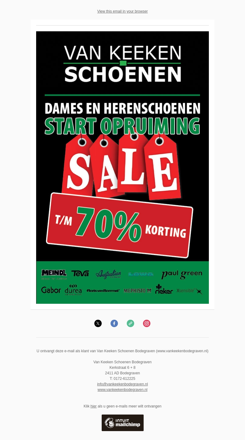 De grote opruiming is begonnen bij Van Keeken Schoenen! Profiteer van kortingen tot 70% op een breed assortiment aan dames- en herenschoenen van topmerken zoals Meindl, Teva, Gabor en meer. Sla je slag nu het kan!