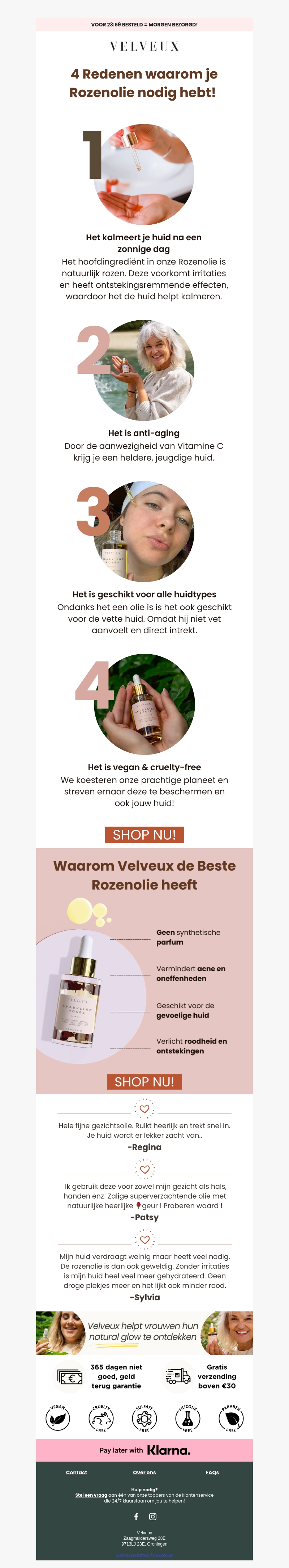 Onze rozenolie biedt tal van voordelen voor je huid. Het kalmeert, werkt anti-aging, en is geschikt voor alle huidtypes. Bovendien is onze olie vegan en cruelty-free. Probeer het nu en geniet van een stralende teint!