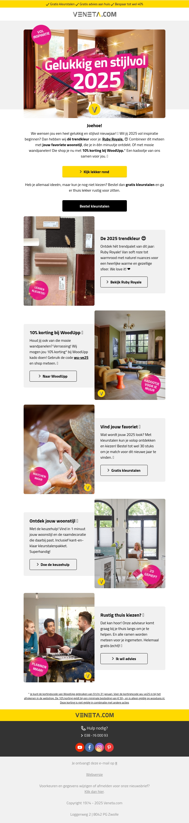 Ontdek de trendkleur van 2025: Ruby Royale. Van zacht roze tot warme nuances, ideaal voor een gezellige sfeer. Profiteer nu van 10% korting bij WoodUpp met de code wu-ve25. Bestel vandaag nog jouw kleurstalen en transformeer je huis.