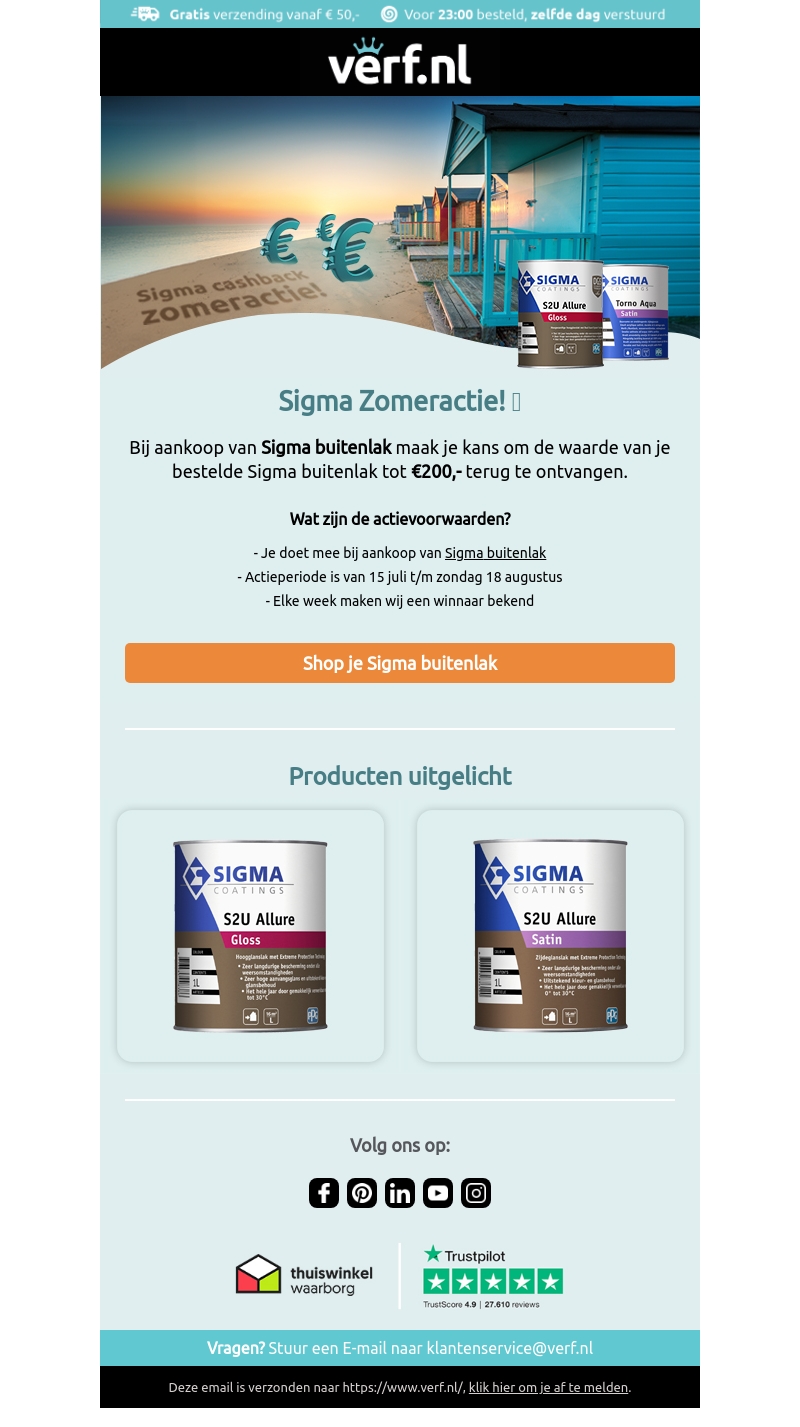 Doe mee aan de Sigma zomeractie en maak kans om tot €200 terug te winnen! Koop Sigma buitenlak tussen 15 juli en 18 augustus en u maakt elke week kans. Bezoek nu ver.nl en ontdek meer!