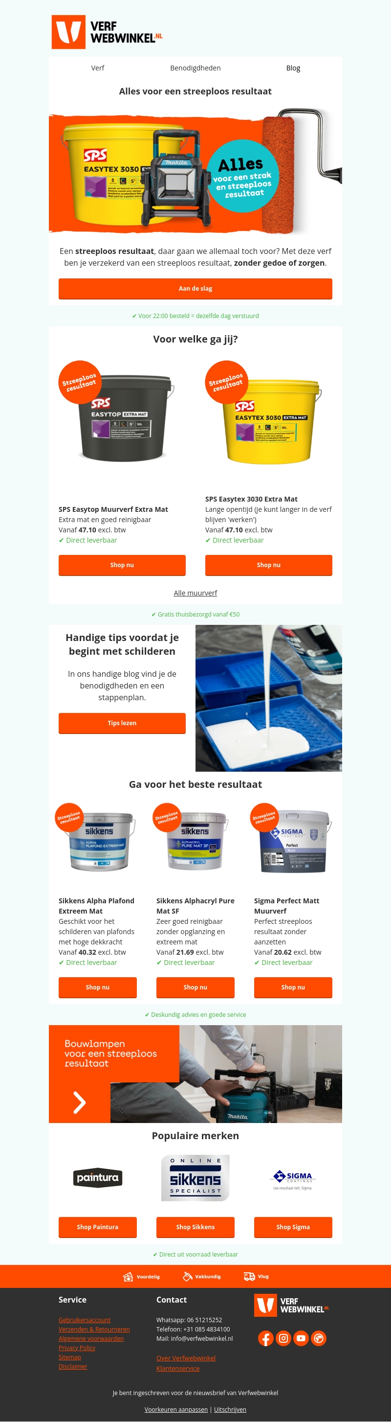 Ga voor een streeploos resultaat met onze topkwaliteit verven en handige schildertips. Ontdek de SPS Easytop en Easytex, Sikkens, en Sigma verfopties. Bestel voor 22:00 en ontvang dezelfde dag nog je producten. Gratis bezorging vanaf €50!