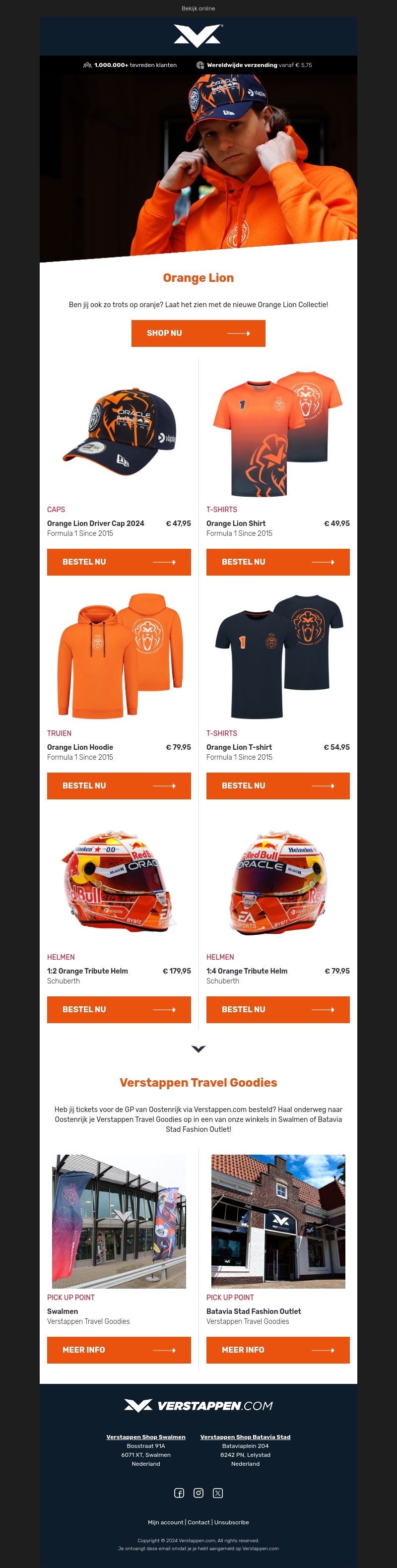Ben jij ook zo trots op oranje? Ontdek de nieuwe Orange Lion Collectie met caps, shirts, hoodies en helmminiaturen. Perfect voor elke fan om hun steun te laten zien.