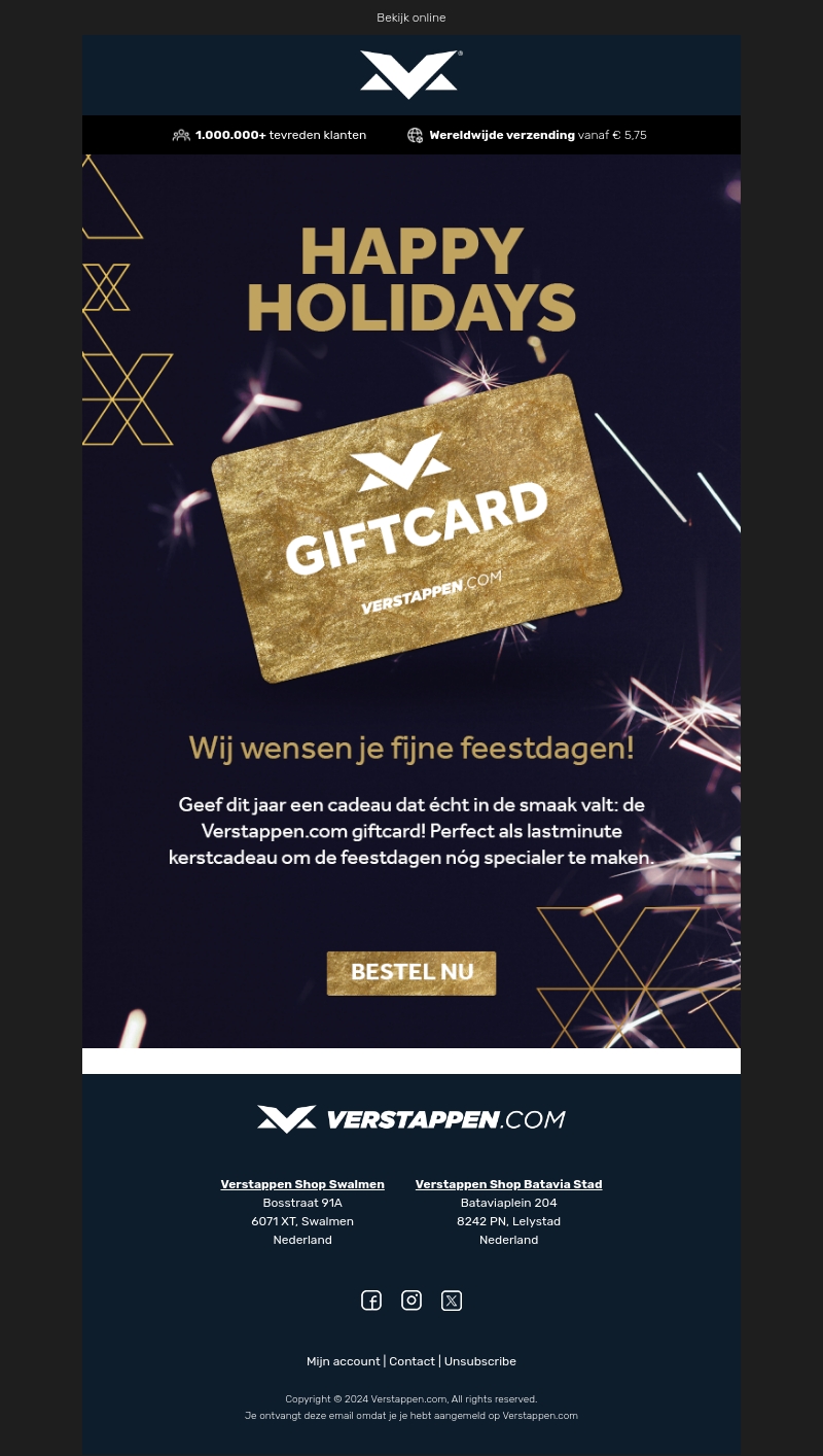 Verwen je dierbaren met een speciale Verstappen.com cadeaubon deze feestdagen. Perfect als lastminute cadeau en om de kerst extra bijzonder te maken. Bestel nu en verspreid de feestvreugde!