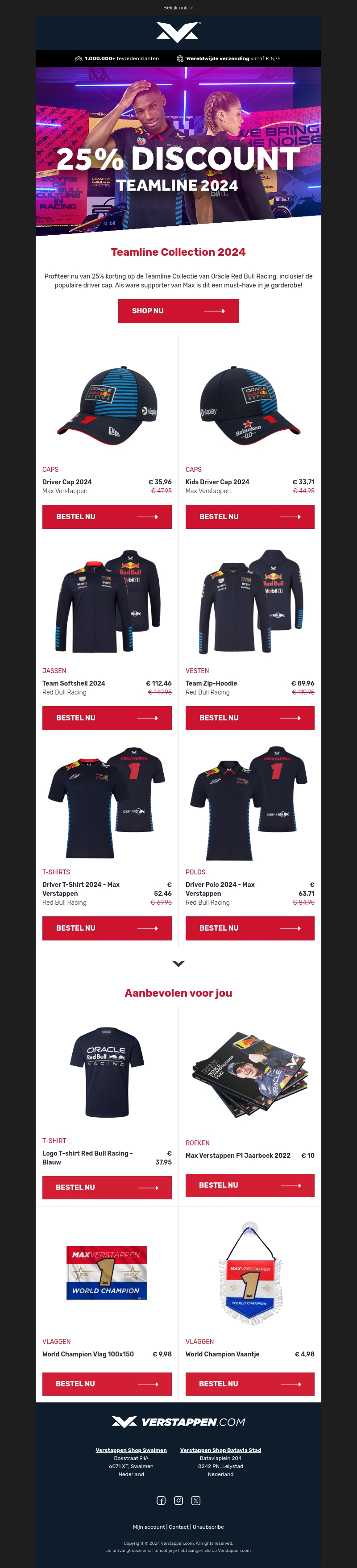 Profiteer nu van 25% korting op de nieuwste Teamline collectie van Red Bull Racing. Van caps tot vesten, er is voor ieder wat wils. Bestel snel je favoriete items en steun je favoriete team.
