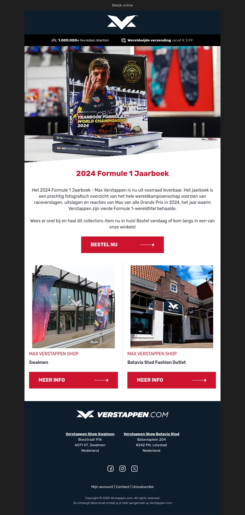 Het 2024 Formule 1 Jaarboek - Max Verstappen is nu uit voorraad leverbaar. Dit prachtige boek biedt een visueel overzicht van het wereldkampioenschap met raceverslagen, uitslagen en de reactie van Max op zijn vierde wereldtitel. Mis deze kans niet om een stukje Formule 1-geschiedenis toe te voegen aan je collectie. Bestel nu online of bezoek een van onze winkels voor meer informatie.