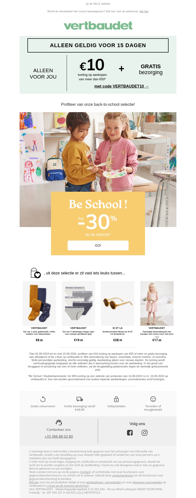 Pak nu β¬10 korting op je aankopen van meer dan β¬50 en geniet van gratis bezorging! Deze aanbieding is slechts 15 dagen geldig. Ontdek bovendien onze nieuwe back-to-school collectie en bespaar tot 30% op geselecteerde items. Alleen vandaag met code.