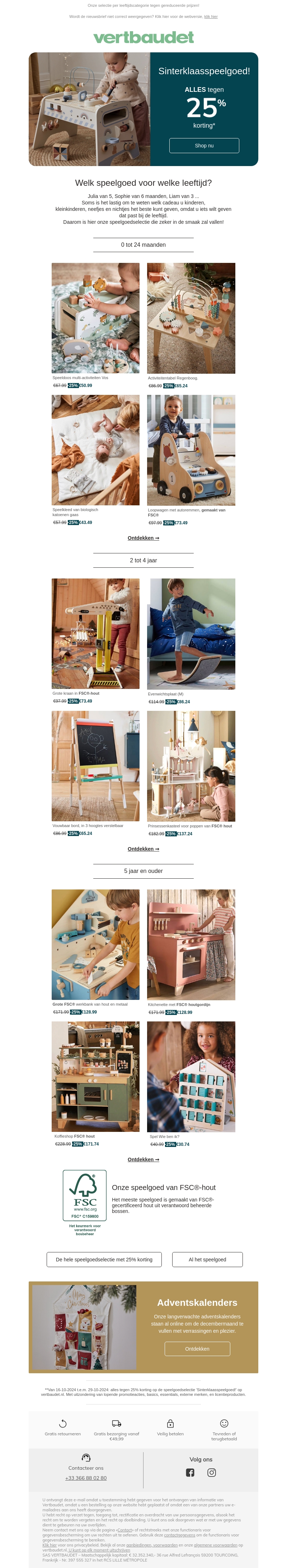 Verwen de kleintjes met perfect speelgoed voor Sinterklaas! Ontdek een breed scala aan speeltjes voor verschillende leeftijden, allemaal tegen 25% korting. Van FSC-gecertificeerd hout tot educatief speelgoed, er is voor ieder wat wils. Haal nu je voordeel en zorg voor vreugde tijdens de feestdagen. Shop vandaag nog en maak gebruik van deze exclusieve aanbieding.